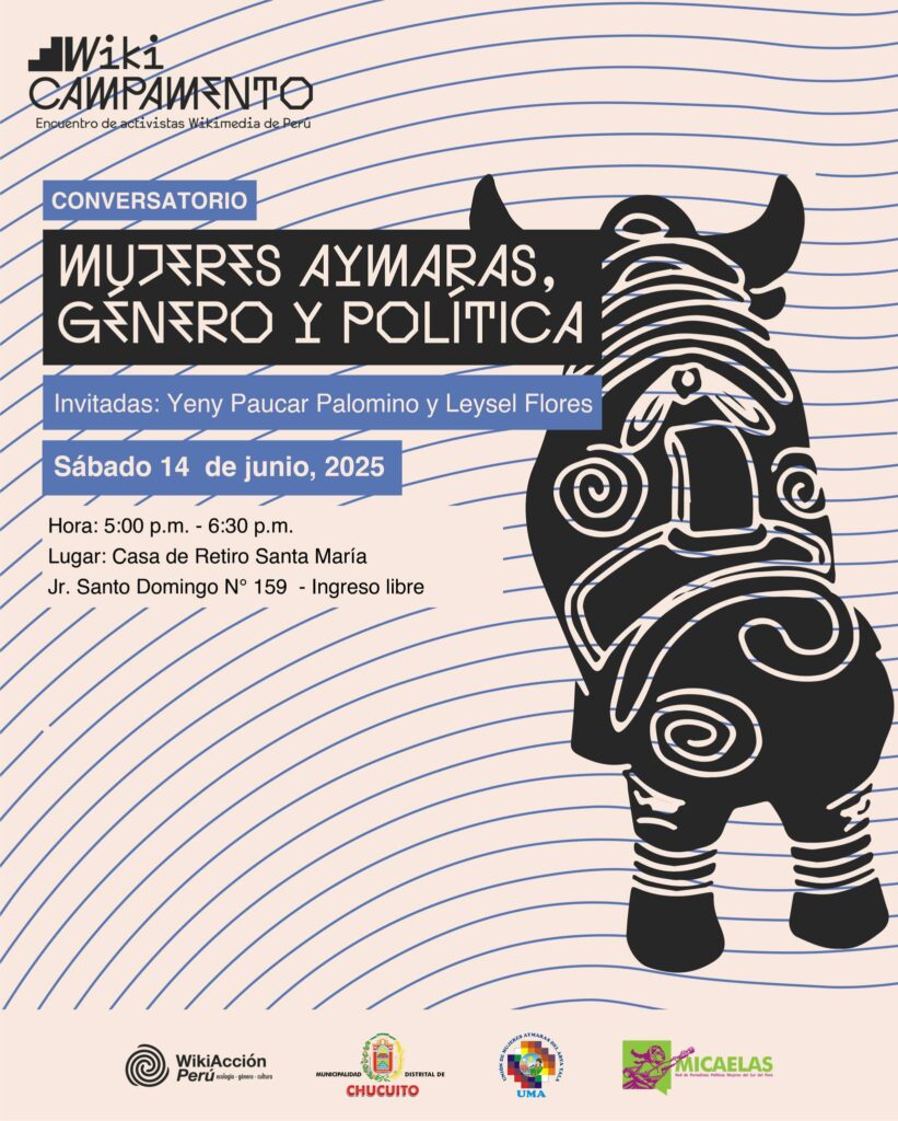 Ponencia presentada durante la charla “Mujeres aymara: género y política”, durante el Wikicampamento 2025: Encuentro para activistas Wikimedia de Perú, realizada en Chucuito, Puno, entre el 12 y 16 de junio de 2025.