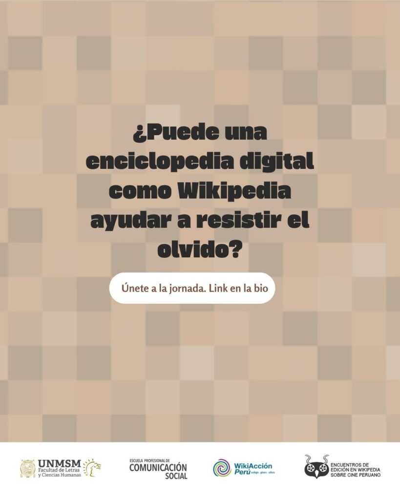 Desde la Facultad de Letras y Ciencias Humanas de la Universidad Nacional Mayor de San Marcos, en articulación con WikiAcción Perú y los Encuentros de Edición en Wikipedia sobre Cine Peruano, este encuentro reafirma el compromiso por preservar, investigar y difundir el patrimonio audiovisual, promoviendo la participación activa de la comunidad universitaria y de toda persona interesada en el cine, la historia y la cultura libre.