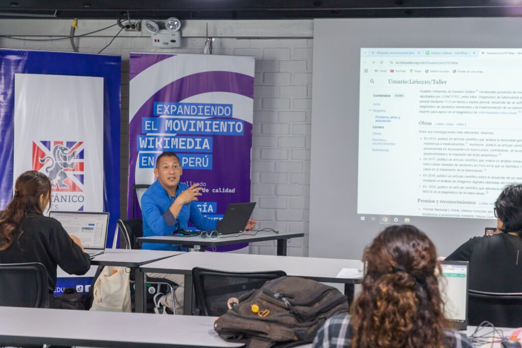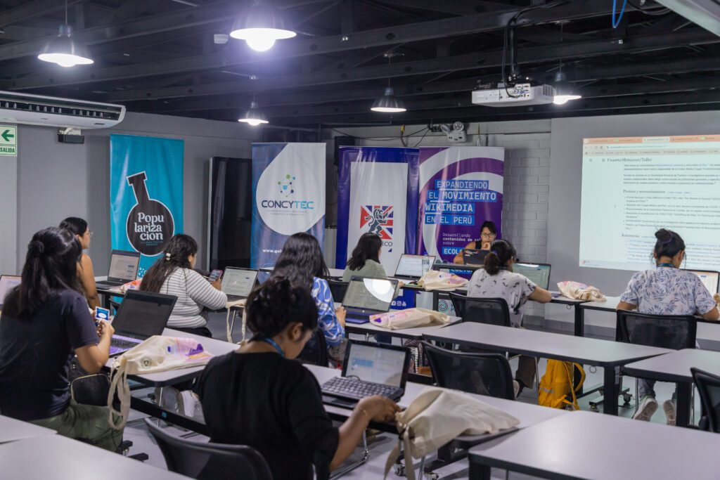 Foto del talleres presenciales en Lima. Foto de Guillermo Carlos Gómez, CC BY-SA 4.0. Registro disponible en Wikimedia Commons
