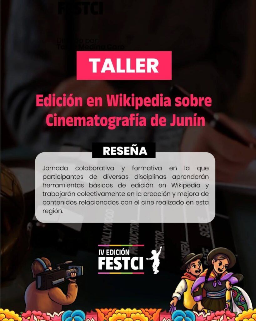 En el marco del Festival de Cine Incontrastable, se realizará el Encuentro de Edición en Wikipedia sobre Cinematografía de Junín, una jornada formativa y colaborativa que busca fortalecer la presencia del cine de la región de Junín en el ecosistema digital libre.