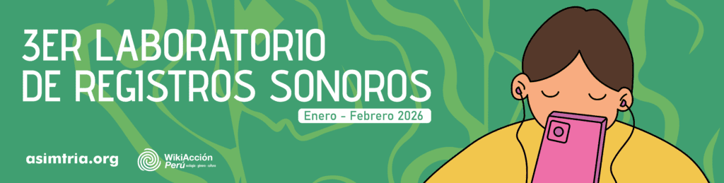 El 3er Laboratorio de Registros Sonoros 2026 es un espacio formativo y colaborativo impulsado por WikiAcción Perú en alianza con asimtria, diseñado para promover el diseño e implementación de proyectos de registro, digitalización y liberación ética de archivos sonoros vinculados a lenguas orales y saberes comunitarios. Esta iniciativa se construye a partir de los aprendizajes de experiencias previas con lenguas orales de pueblos originarios dentro y fuera del ecosistema Wikimedia, y plantea una ética de trabajo comunitaria, horizontal y situada, reconociendo que el conocimiento oral no es un recurso a extraer, sino un proceso vivo ligado al territorio, la memoria, la identidad y la autodeterminación de las comunidades .