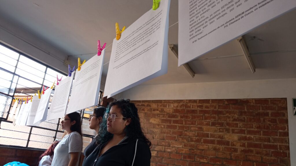 En la fase inicial, el tendedero de testimonios se convirtió en el primer espacio simbólico de encuentro. Colgar en hilos las palabras de mujeres que habían vivido violencia obstétrica permitió al equipo iniciar un diálogo profundo sobre cómo estas historias se entrelazan con la vida personal, clínica y formativa de cada participante. Fue también el inicio de una curaduría colectiva que dio forma a las voces que más tarde resonarían públicamente.