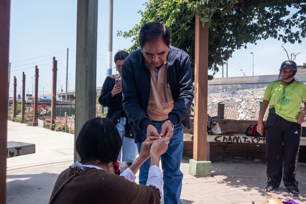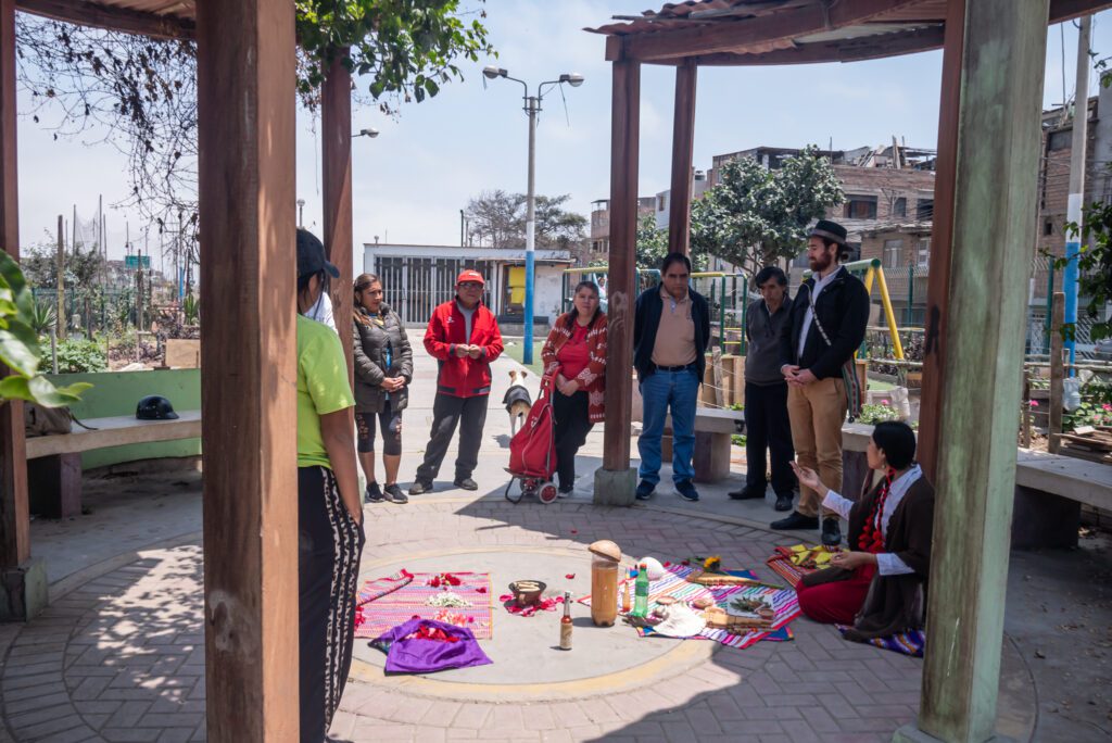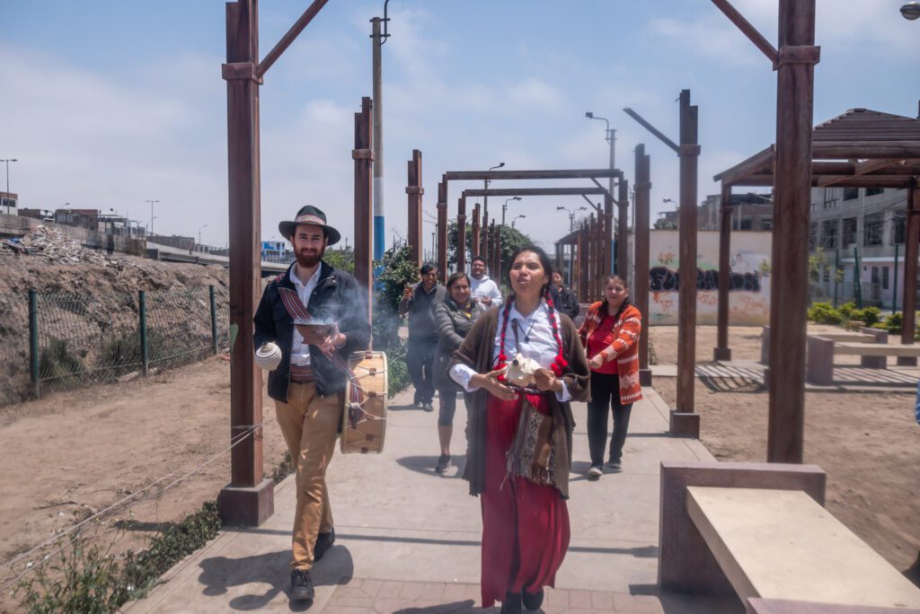 Posteriormente, se realizó un recorrido por el malecón, eligiendo un punto que permitiera una mejor visualización del río. Desde allí, a través de la ofrenda compuesta por flores e incienso, las y los participantes se acercaron lo más posible al cauce, con el deseo de hacer llegar sus mensajes al Rímac. Al regresar al punto inicial, se propiciaron diálogos entre saberes ancestrales y prácticas vecinales contemporáneas, que pusieron en valor la importancia de preservar la memoria, el territorio y la vitalidad del río.