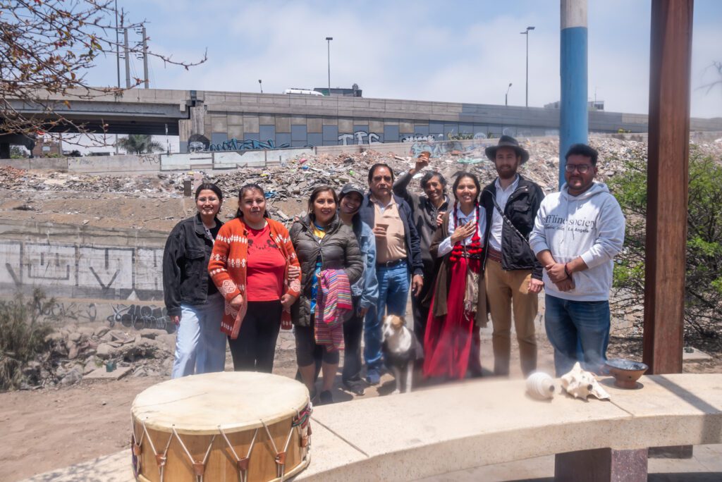 En la foto vecinas y vecinos del Comité Vecinal Malecón Rímac y la Junta Vecinal Malecón Rímac en San Martín de Porres, Makita Mishti e integrantes de Jóvenes Accionando por el Clima (JAC).
