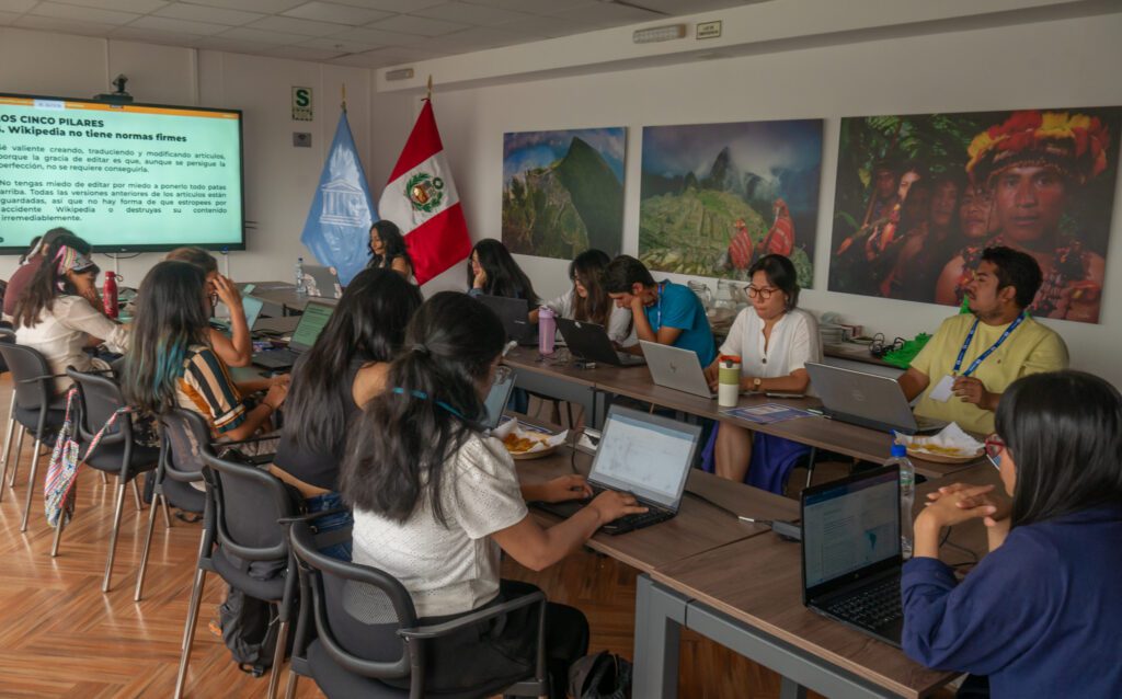 El primer taller se realizó en la mañana del 26 de febrero de 2026 en la oficina de la UNESCO en Lima y estuvo dirigido a su equipo institucional. Durante esta sesión se presentó el ecosistema Wikimedia, el trabajo de WikiAcción Perú y los principales alcances del proyecto regional, destacando el papel de plataformas como Wikipedia y Wikidata como infraestructuras clave para el acceso a información abierta y confiable.