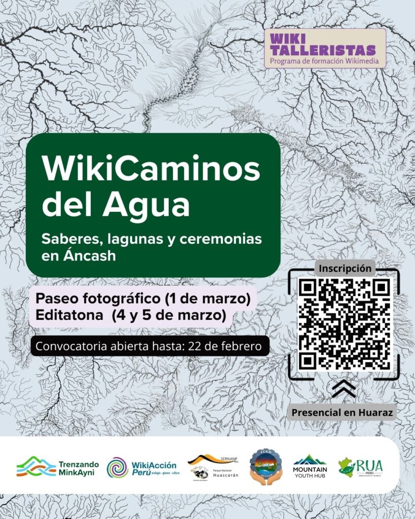 El agua en Áncash no solo da vida: también guarda memoria, conecta comunidades y sostiene prácticas ancestrales que siguen vigentes en los territorios altoandinos. En este contexto nace WikiCaminos del Agua: Saberes, lagunas y ceremonias en Áncash, un proyecto que busca documentar y visibilizar estos conocimientos en plataformas de acceso libre como Wikipedia y Wikimedia Commons.