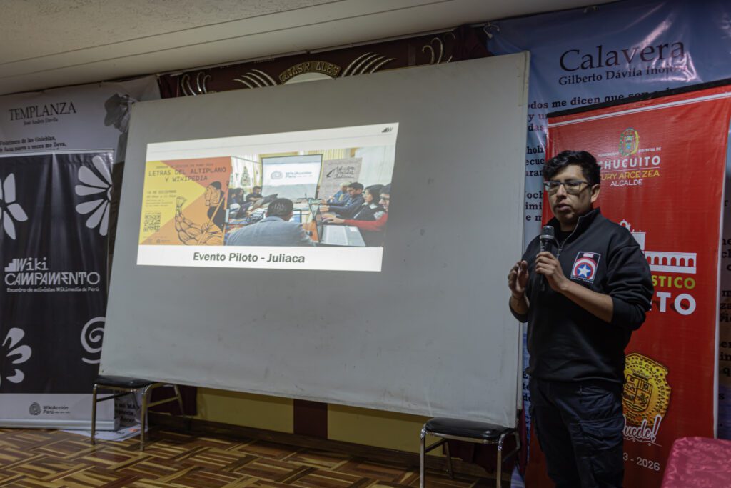 Iniciativas colaborativas desde el activismo digital, los proyectos presentados vinculan el uso de plataformas Wikimedia para visibilizar luchas sociales, reconstruir memorias colectivas, fortalecer identidades locales y proteger el conocimiento ancestral. Esta actividad se realizó en el Auditorio de la Municipalidad Distrital de Chucuito.