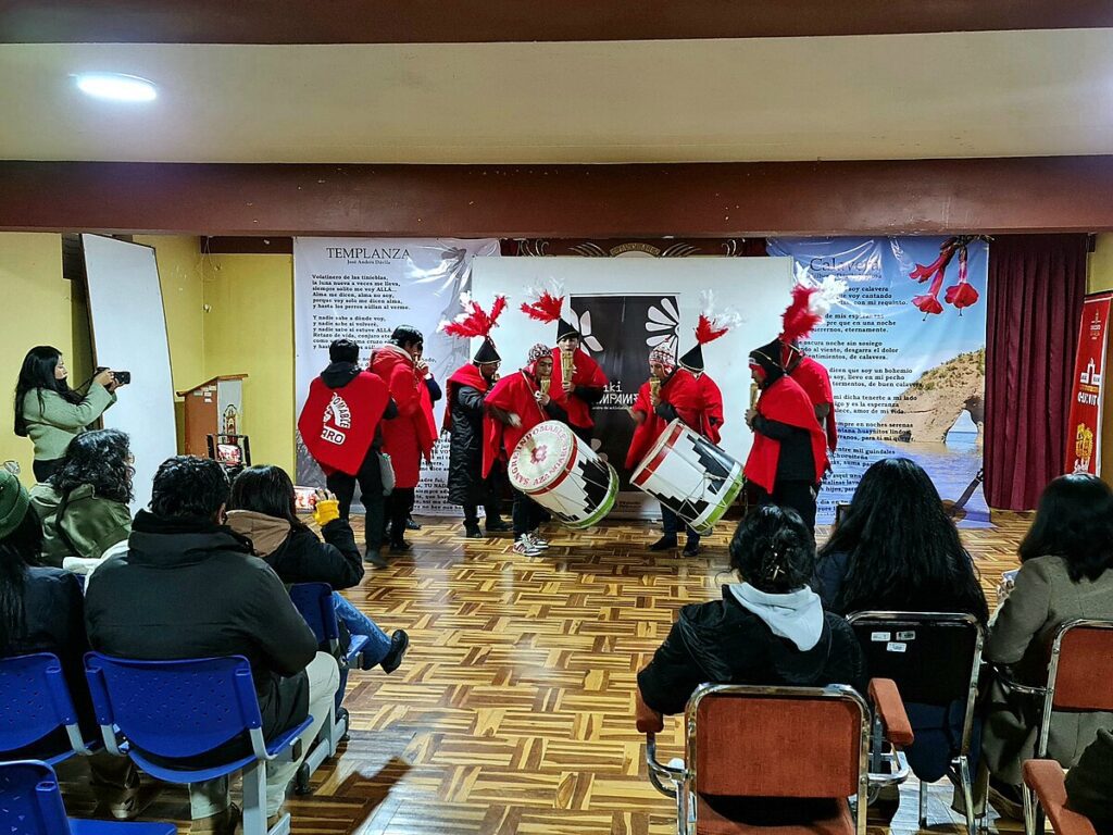 Actividad de inicio que buscó reflexionar sobre el poder del arte para sanar heridas colectivas, preservar la memoria y resistir frente a las múltiples violencias que ha vivido el pueblo puneño. La conversación estuvo a cargo de Roxana Carpio, destacada cantante y comunicadora quechua, quien compartió su experiencia como artista comprometida con la defensa de la lengua y cultura andina. Esta actividad se realizó en el Auditorio de la Municipalidad Distrital de Chucuito.